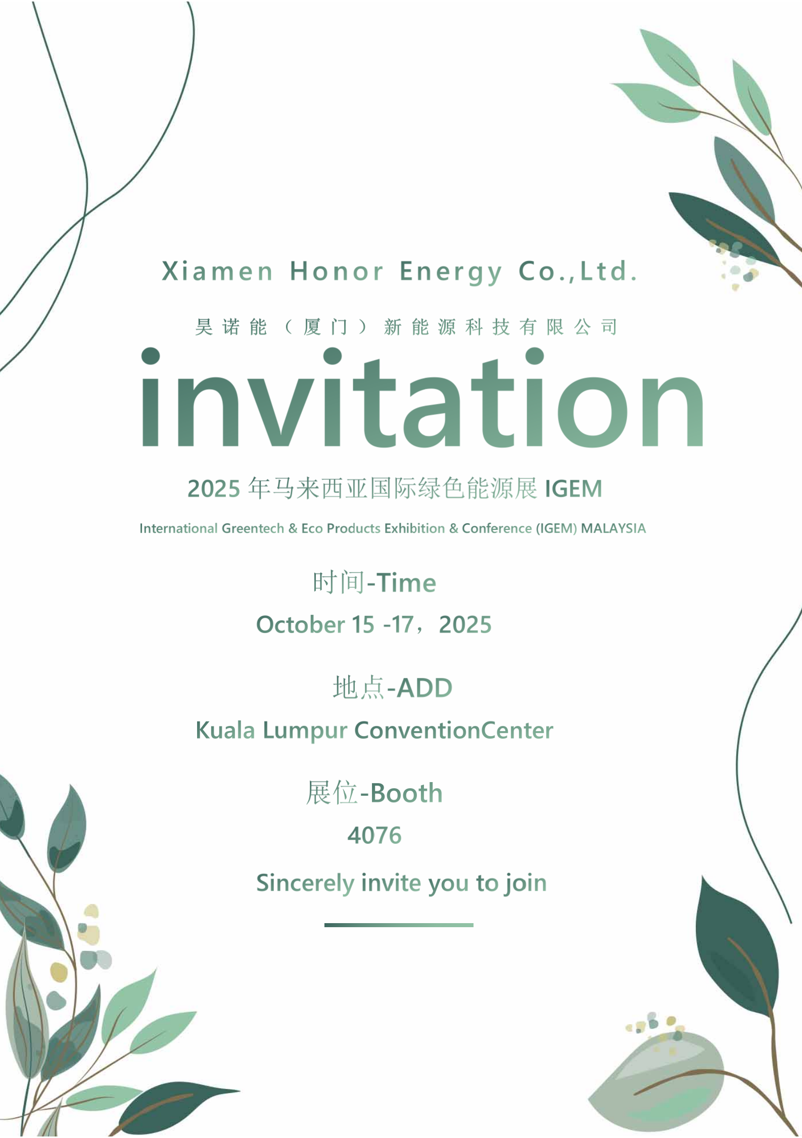 অঞ্চলের নেতৃস্থানীয় শক্তি রূপান্তর প্রদর্শনী এবং সম্মেলন হিসাবে, IGEM 2025 একত্রিত হতে প্রস্তুত60000 অংশগ্রহণকারীরা,550 প্রদর্শক, এবং70 সফরকারী দেশগুলো। এই বার্ষিক ফ্ল্যাগশিপ ইভেন্ট, মালয়েশিয়ার জ্বালানি মন্ত্রণালয় দ্বারা অনুমোদিত, বিশ্বব্যাপী নীতিনির্ধারক, শিল্প নেতা, উদ্ভাবক এবং বিনিয়োগকারীদের অংশীদারিত্ব তৈরি করতে, অত্যাধুনিক প্রযুক্তি আবিষ্কার করতে এবং বৈশ্বিক শক্তির এজেন্ডা গঠনের জন্য একটি গুরুত্বপূর্ণ সম্পর্ক হিসেবে কাজ করে৷